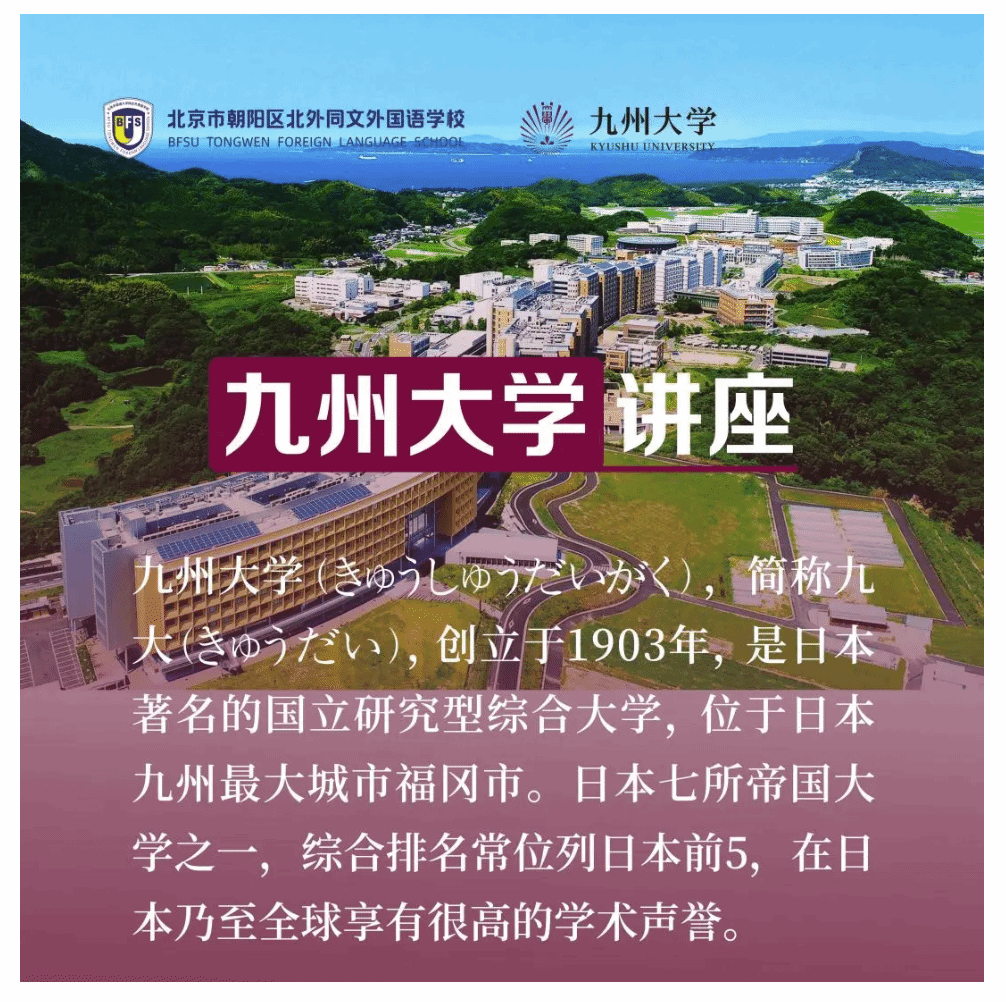 9月12日上午,北京外国语大学同文外国语学校荣幸地邀请到日本九州大学的事务所李老师为日本项目学生带来了一场精彩的大学说明会。