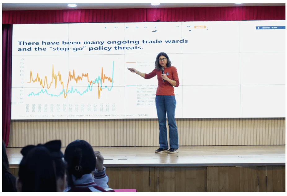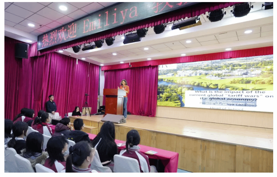 2025年11月3日中午,阳光轻洒在北外同文外国语学校的校园,一场备受瞩目的经济类专题讲座在此拉开帷幕。英国皇家经济学会主席Emiliya Lazarova教授一行亲临现场,为师生们带来了一场精彩的经济学讲座。