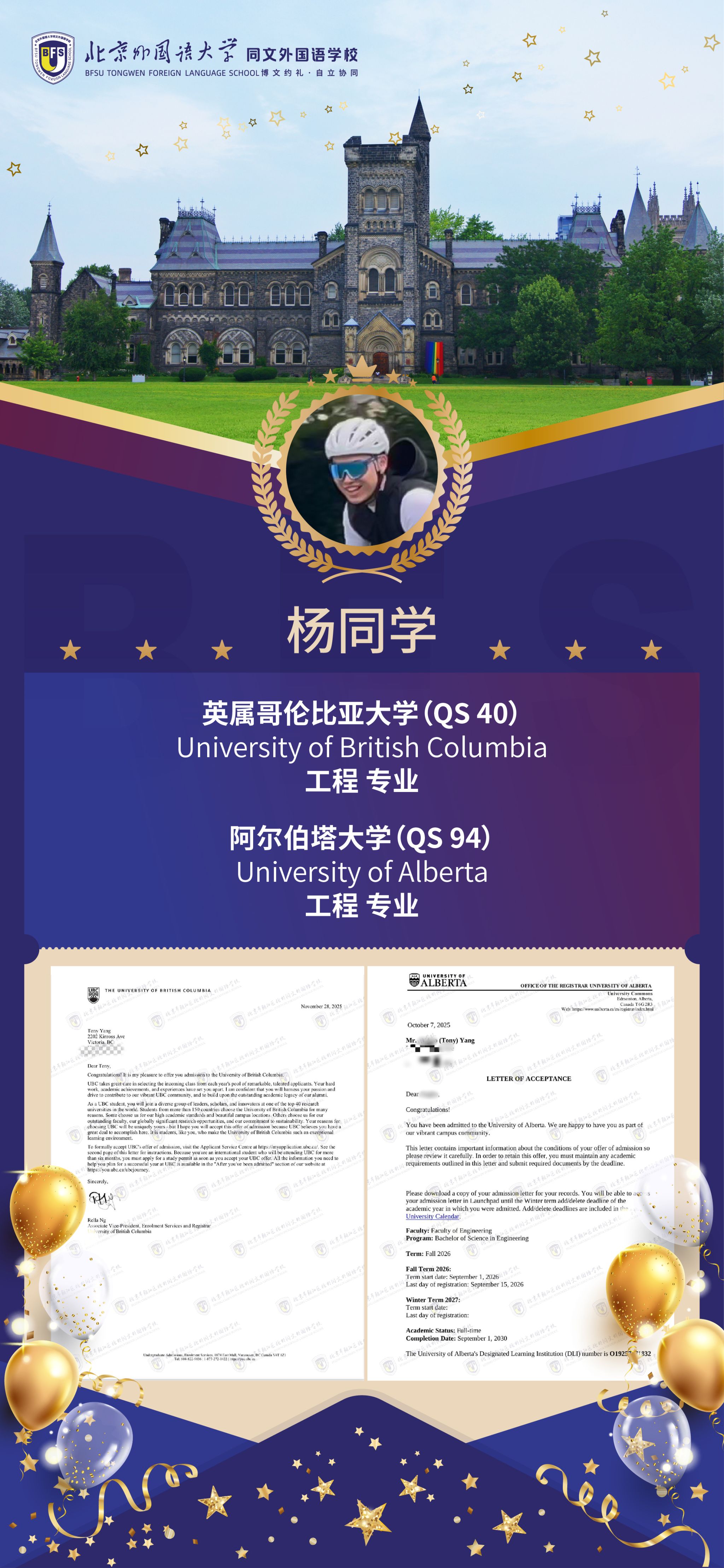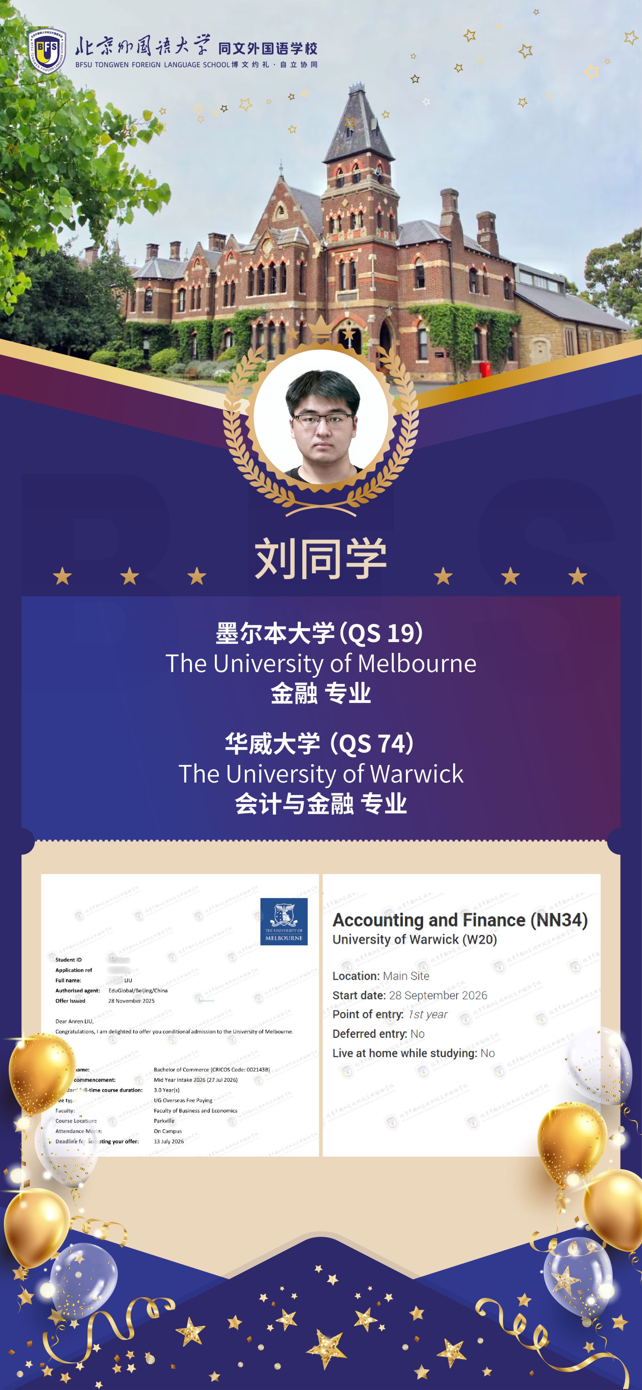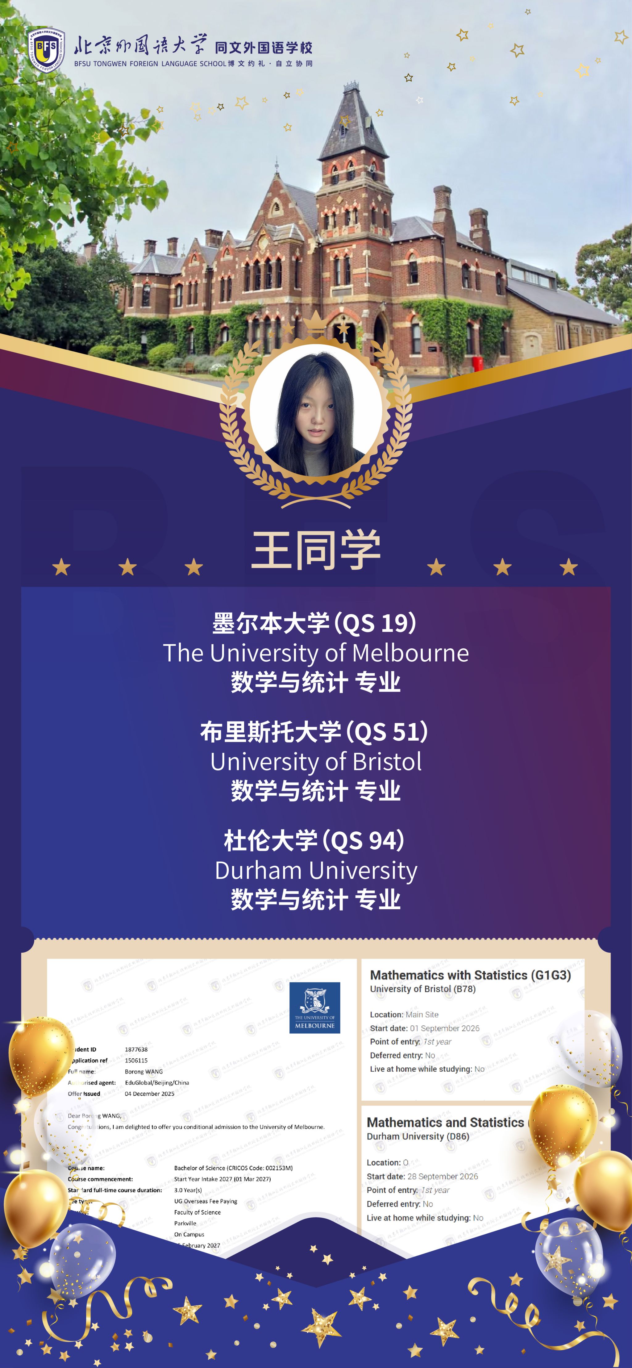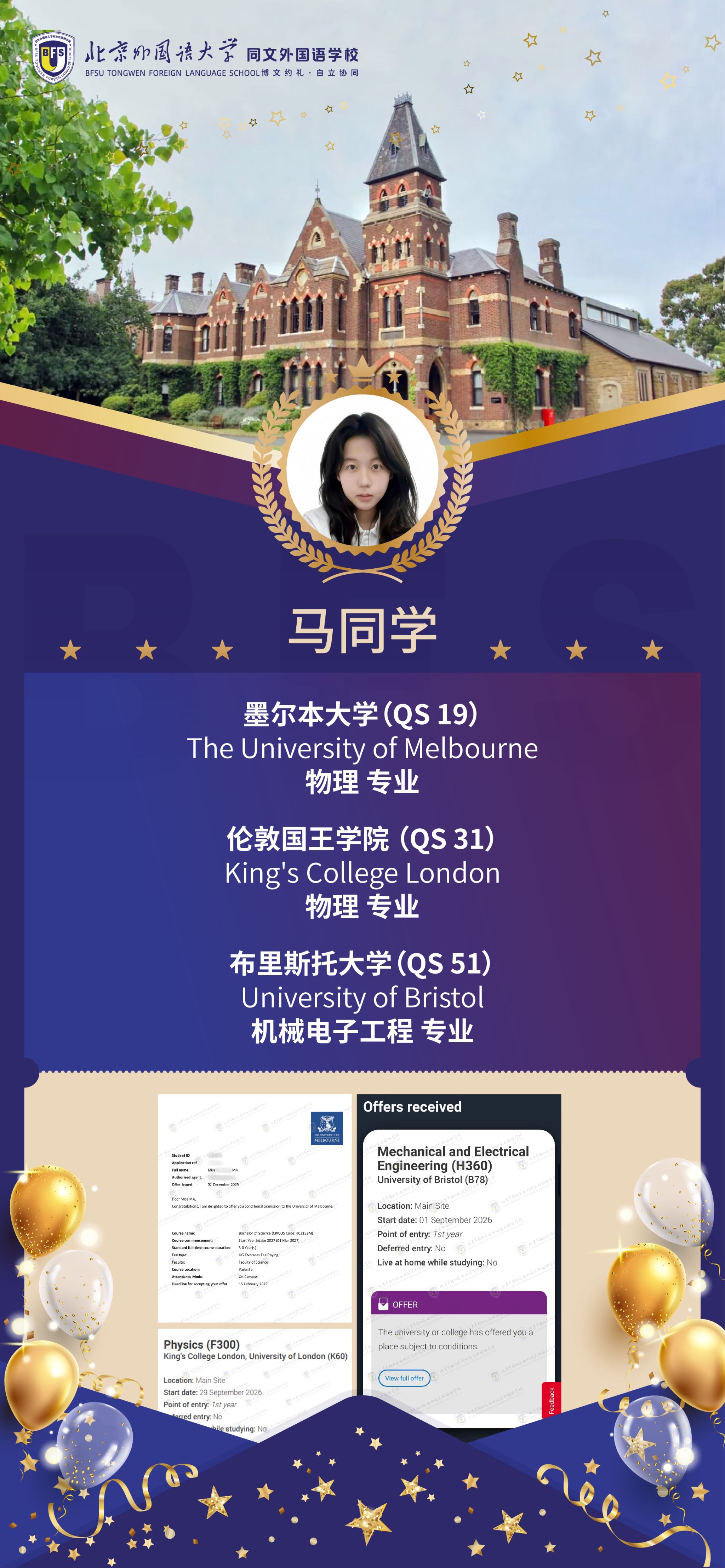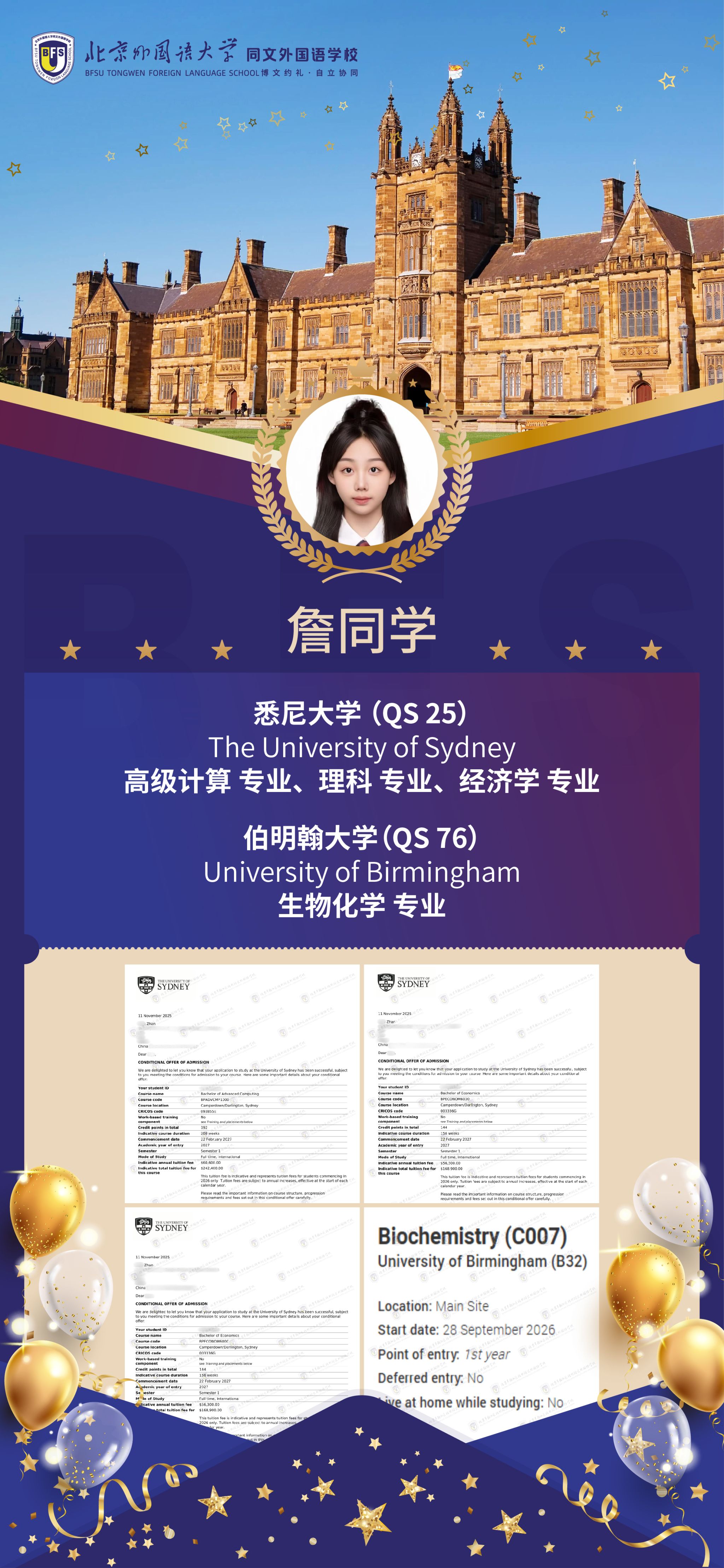 截至 2025 年 12 月初,北外同文学子在海外大学申请季捷报频传,已成功斩获多份全球顶尖高校的重磅录取 offer!