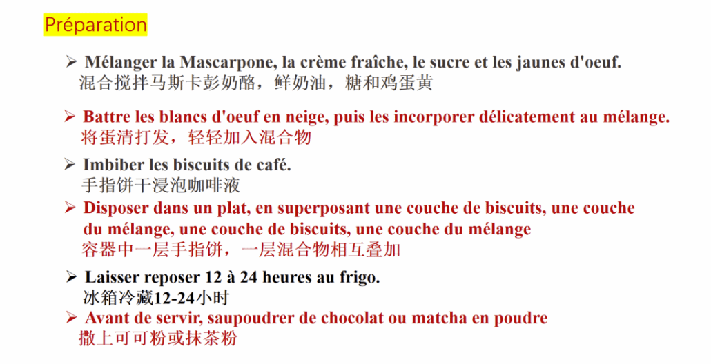 当课本上的法语词汇,变成描述“ 手指饼干浸泡咖啡液”、“咖啡浸润时长”、“撒上可可粉或抹茶粉”的鲜活表达,即时的语言成就感让学习动力直接拉满,也让语言学习彻底跳出了纸面的局限。