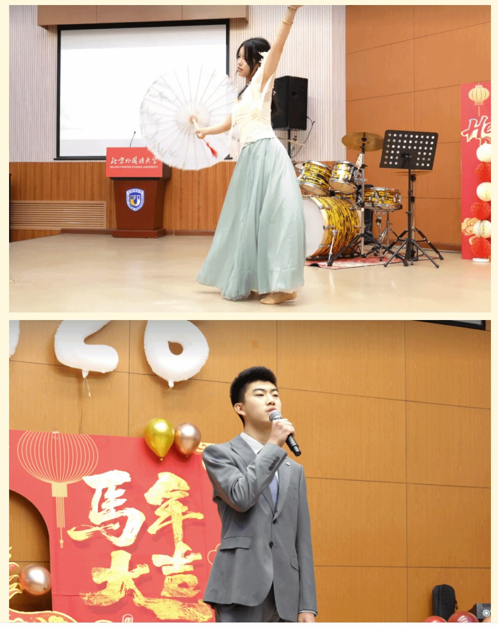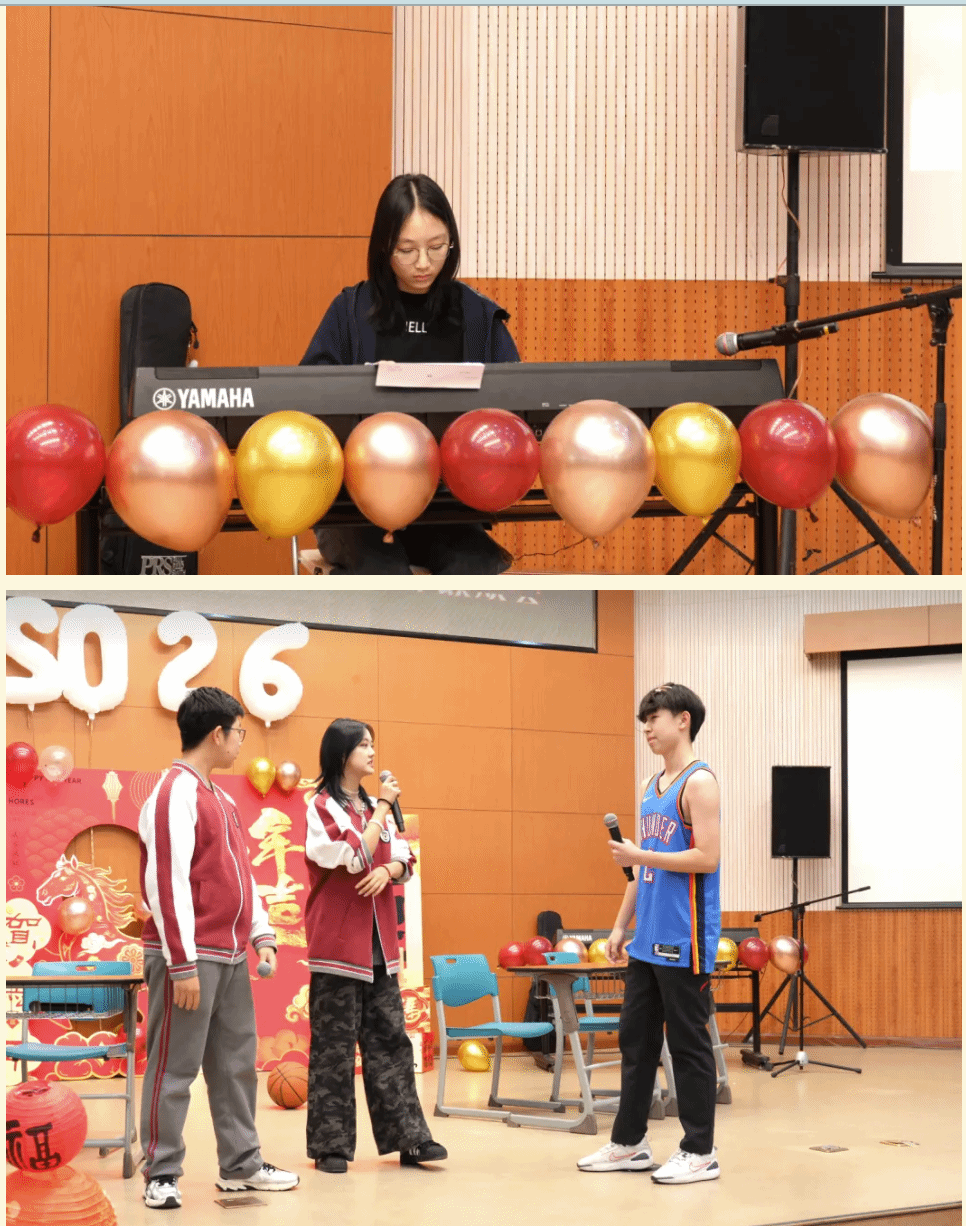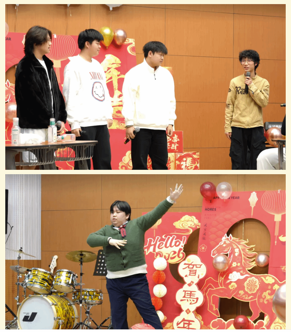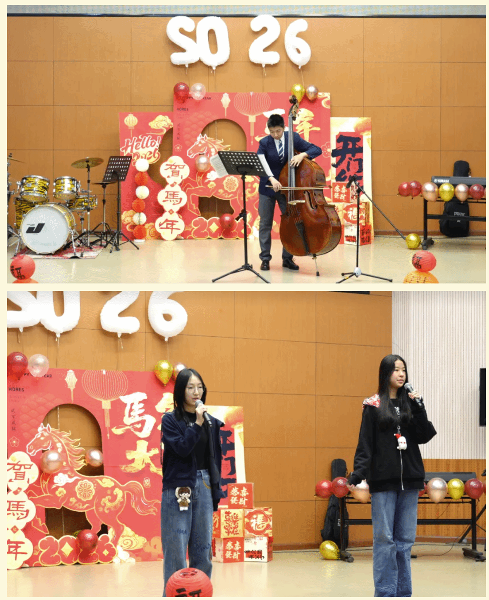 “这一年,收获满满且亮点纷呈。老师们深耕课堂,把北外的优质资源转化为育人实效。同学们不仅精进学业,也展现了聪明才智;听海外大学招生官、教授讲座,拓宽认知;在研学旅行、春秋游中亲近自然,增进情谊。既完成了学业上的进步,也练就了本领,开阔了眼界。新的一年,愿你们保持对知识的渴望和对世界的好奇,在学习中感悟文化魅力,在实践中探索、锤炼过硬本领,在合作包容中收获真挚友谊。不管离我们而去的这一年有多少喜悦、欢乐、遗憾或是痛苦,此刻都抛到身后。祝愿同学们在新的一年中身体健康,学业有成。2026,马到成功!”